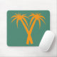 Um design de retro e de vintagem de palmeiras laranja vivas e vibrantes com uma víbora havaiana ou tropical contra um fundo azul-lacrimogêneo personalizável. Este produto é perfeito para uma tábua na moda de Verão de praia. Legal e retrô.