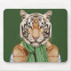Características que deste design um o inverno do tigre pronto vestindo seu invista para baixo, lenço da malha e camisola verdes do Natal.