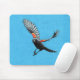 Caneta desenhada à mão e pássaro preto de asas vermelhas com tinta num fundo azul