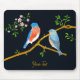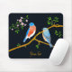 Um mousepad com belas imagens de um casal de pássaros azuis. O fundo, imagem e texto podem ser personalizados. Arte original de W.B.