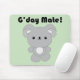 Um mouse bonito com um coala kawaii abaixo das palavras G’day Mate! num fundo verde pastel. Excelente para amantes do coala, australianos e fãs de pop japonês e diversão do kawaii!