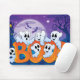 Mouse pad Halloween/Cena Assombrada com Ghost fofo dizendo que Boo Cria um mouse pad personalizado para casa e escritório! Decorre a sua secretária com a sua imagem favorita ou escolha entre milhares de designs que parecem excelentes e protegem o rato de arranhões e detritos. 9,25" x 7,75" - Perfeito para qualquer mesa ou espaço de trabalho. Qualidade, impressão a cores do cheio. O cobrir de tecido durável é resistente ao pó e à mancha. Sem escorregamento. Sem ordem mínima.