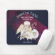 Um mousepad do tema cristão. Projetado com um anjo doce com asas amarelas segurando um pântano pastor. Sentado com cordeiros brancos. Fundo azul marinho e cor d'água burgundy, com minúsculos flecks de brilho dourado falso (não brilho real apenas uma imagem impressa). O texto diz: paz na terra e boa vontade para com todos.