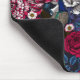 Padrão desenhado à mão com pavões e vários rosas sobre fundo escuro