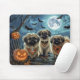 Libere o espírito assustador com esta design sombria do Dia das Bruxas apresentando um bando de cachorros sob um céu escuro e iluminado, cercado por morcegos voadores e abóboras brilhantes. Perfeito para aqueles que amam um toque de diversão terrível com seus amigos peludos!