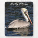 Um bonito Pelicano flutuando no oceano. — Você pode alterar o texto se quiser ou apagá-lo completamente. - A fotografia é protegida por copyrights em 2012, pela fotógrafa Christina Spiegeland.