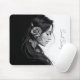 Mousepad Perfil artístico feminino com rosa em monocromo