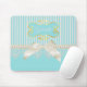 Um mousepad de estilo vitoriano vintage, com faixas azuis aqua, embelezado com uma fita colada em creme atada num arco afixado a uma corda de pérolas elegantes. Personalize este design feminino adicionando o seu nome ao quadro de borda dourada do ornamentado. NOTA: Esta é uma imagem impressa em formato plano. O arco, o rendas, as pérolas e o quadro de ouro NÃO são reais.