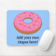 Adicione um slogan ou nome para criar um presente personalizado com um tema de rosquinha. Imagem mostra uma rosquinha cor-de-rosa com aspersores de açúcar, para deleitar qualquer um com um dente doce!