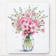 Um buquê de flores cor-de-rosa vibrantes com pegadas de bebês organizadas elegantemente em um vaso de vidro cria uma peça central fresca e viva