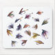 uma seleção de atrações da mosca de pesca artificial. A truta amarrada mão voa