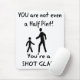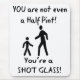 Este tapete do rato do costume caracteriza um design de texto cómico que seja uma grande ideia do presente da mordaça para as pessoas altas que como para amolar seus amigos curtos (como meu amigo alto). O texto lê-o "é nem sequer uma meia pinta! Você é um VIDRO de TIRO!". Eu espero que este faz seus amigos curtos rir. Eu fiz. Há igualmente silhuetas de uma pessoa curta e alta. A cor do fundo pode facilmente ser personalizada.