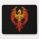Este design de phoenix do vermelho e do amarelo é decorado com redemoinhos e padrões de ponto tribais de fluxo. As asas simétricas estendem para fora de cada lado do teste padrão quando a cauda cair para baixo o centro que forma um ponto na base. As linhas corajosas são destacadas que cria um brilho subtil na superfície. Este phoenix agressivo contudo elegante senta-se em um fundo preto puro que crie um design bonito e à moda do mousepad.