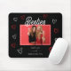 Photo Black and Red Hearts Besties Mouse Pad. Celebrate your unbreakable bond with this charming "Besties" mousepad, designed to showcase your most cherished memory together. This mousepad features a customizable photo frame surrounded by playful red and white hearts on a sleek black background, perfect for displaying a picture of you and your best friend. The elegant script font for "Besties" and space for your names add a personal touch to this heartwarming design. It's an ideal way to keep your friendship close at hand, whether you're working or relaxing, making every glance a reminder of your special connection. This unique design is a perfect way to express your appreciation for your best friend forever.