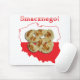 Belo mapa de Polônia com cobertura vermelha e branca e um monte de Pierogi no centro e Smacznego! acima do mapa. presente de excelente para qualquer um com raízes poloneses.