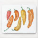 Este mousepad apresenta um padrão ilustrado de pimentões coloridos vermelhos, laranja e amarelos. Direitos autorais da obra de arte: Dominic White. Todos os direitos reservados.