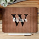Este design apresenta um padrão de listras de pinça vintage em laranja queimado com listras tracejadas fora do preto. Personalize-o com o seu monograma inicial em fora do preto e o seu nome no guião retrô branco.
