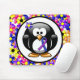 Pinguim giro com uma fita azul e roxa e flor correspondente. A fita azul e púrpura representa Artrite Reumatoide e Acidente Pediátrico. O Mês de Sensibilização por Curso Pediátrico e a Artrite | Mês de Consciência da Artrite Reumatoide.