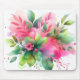 Mousepad Pink Green Watercolor Botanical Bloom