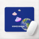 Pires voadores modernos sobre o mundo em Mouse Pad azul. O texto pode ser personalizado.