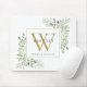 Mat de rato com um monograma de cor aquosa elegante verde floral com nome de um monograma de ouro. Projetado por Thisnotme©