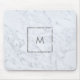 Pasta de rato monograma personalizada com design de fundo de mármore branco moderno, com um monograma personalizado, embutido num quadro de cintilação prateada.