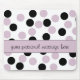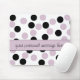 Um mouse pontilhado poka, rosa claro e preto, com uma área de texto personalizável. Os produtos de coordenação estão disponíveis no meu compro.
