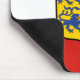 Mousepad com pavilhão variante de Schleswig-Holstein; design com tricolor horizontal de vermelho, branco e azul e casaco de armas do Estado no centro