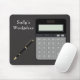 Este Mouse Pad tem um design único na frente com um gráfico de calculadora com chaves de cinza e letras brancas e também um gráfico de Caneta em preto. A cor do texto e do plano de fundo pode ser alterada de acordo com as suas necessidades. Imprima os seus colegas de trabalho.