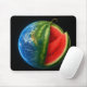 Planeta Criativo de Melancia Flutuando no Espaço para o Pad do Mouse. O planeta Terra reimaginou como uma melancia com textura realista e seção fatiada, conceito surreal misturando fruta e espaço em um cenário cósmico.