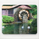 Roda de água de madeira pacífica e serena e uma lagoa com patos. Pintura fotográfica em estilo seurat digital por Susan. Esta imagem está disponível em muitos produtos da minha galeria.