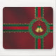 Sinos dourados pendurados no centro de uma grinalda de folhas escuras de azevinho e gemas vermelhas para frutos, cruzada por fitas vermelhas e verdes com estrelas douradas nas bordas. Como um presente de Natal embrulhado em vermelho escuro e amarrado com fitas listradas brilhantes.