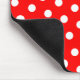 Pontos brancos contra um fundo vermelho brilhante. O padrão de bolinhas brancas é inclinado numa diagonal.