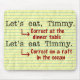 Este hilário mouse pad para escritores, editores, bibliotecários, professores de inglês e esnobes gramaticais ilustra a importância da pontuação. Quando está ligando para o Timmy jantar, precisa de uma vírgula. Quando estiver planejando canibalizar Timmy em uma jangada salva-vidas, deixe a vírgula para trás. Timmy ficará grato na situação nº 1 - e todos os outros no barco ficarão gratos pela situação nº 2. Seja qual for a situação, você será um membro orgulhoso da polícia gramatical.