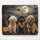Libere o espírito assustador com esta design sombria do Dia das Bruxas apresentando um bando de cachorros sob um céu escuro e iluminado, cercado por morcegos voadores e abóboras brilhantes. Perfeito para aqueles que amam um toque de diversão terrível com seus amigos peludos!