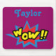 Um mousepad de arte pop divertido este item apresenta "Uau" escrito em texto de grafite de rua amarelo. Com uma estrela vermelha e azul atrás dela, seu nome está escrito em uma linda fonte azul no topo. O fundo é roxo. Peça o seu hoje! Clipart: AnneIllustration https://www.etsy.com/shop/AnneIllustration