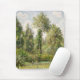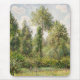 Poplars, Éragny. Camille Pissarro. Paisagem de verão em tons verdes. Grande campo com grama verde. Árvores altas no fundo. Há nuvens no céu azul. Reprodução de famosas imagens de arte no dominio público.
