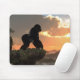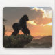 Um gorila do silverback está em um rochosa, borda coberta vegetação que negligencia uma bacia da selva. Os relógios do grande macaco como o por do sol quebram através das nuvens que iluminam convenientemente o céu no fogo. Entrementes, as névoas da noite já estão aumentando entre a floresta tropical no vale abaixo.