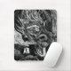 Um dragão esconde-se numa caverna subterrânea. Mousepad com um design personalizável preto-e-branco para você personalizar com sua escolha de letras iniciais. Um desenho de tinta original de Jess Perry.