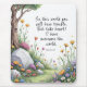 Num jardim de fantasia caprichosa, um caminho sinuoso conduz através de florescências vibrantes. A inscrição de John 16:33: "Neste mundo, você terá problemas. Mas tenha o coração! Eu superei o mundo." A imagem convida os visitantes a refletirem, lembrando-lhes que os desafios fazem parte da jornada, mesmo num reino de maravilha, mas a esperança prevalece.