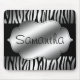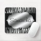 Uma prata à moda do falso e um teste padrão branco da zebra são caracterizados neste mousepad personalizado. O design é gráficos impressos plano -- Prata nao real.