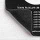 Adicione seu próprio logotipo e texto a este painel de mouse preto. Este item inclui um código QR.