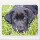 Mousepad com o filhote de cachorro preto adorável do laboratório. Uma diversão bonito para seu espaço de trabalho.