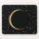 Mousepad Preto e Dourado Lua Celestial Magia Estrelas Lunar