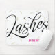Na moda para mouse pad de um artista de barra em um design de captura de olhos com um padrão de barra em ouro. Lashes escritos em um roteiro suave preto. Personalize com seu nome em letras cor-de-rosa-quente em negrito.