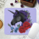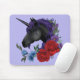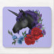 Mousepad Preto Unicórnio Flores Roxo