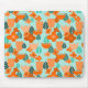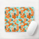 Este mouse pad tem um design escandinavo de flores e folhas em vários tons de laranja e lacre.