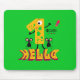 Engraçado grande amarelo número um com bocas, lápis e texto OLÁ PRIMEIRO GRAU