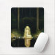 Princesa Tuvstarr com cabelos longos, loiros e ondulantes sentados na floresta, olhando para baixo para seu reflexo nas águas escuras. Linda aquarela de John Bauer. Ilustração para o conto folclórico sueco "A história de Skutt, a alce e a pequena Princesa Tuvstarr", escrito por Helge Kjellin em 1913.