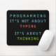 Boost your workspace with this sleek programmer-themed mouse pad featuring the quote “Programming – It’s Not About Typing, It’s About Thinking.”
